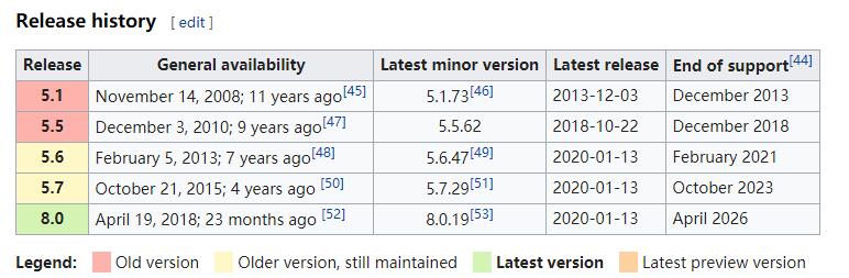 micto 发表于 2020-3-29 23:08 MySQL 5.5在2018年10月最后一版更新,之后就停止支持了。